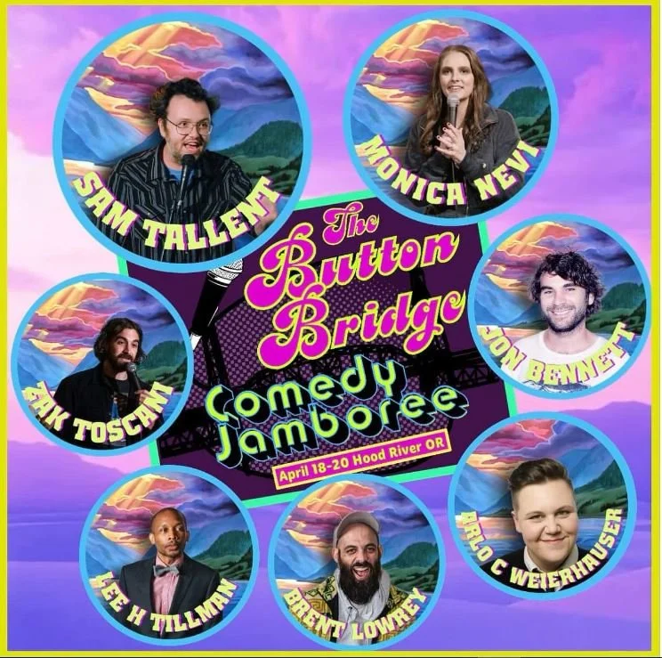 Hood River is hosting the Button Bridge Comedy Jamboree at multiple venues April 18-20. The Button Bridge Comedy Jamboree will feature stand up comedians Brent Lowrey, Jon Bennett, Sam Tallent, Monica Nevi and Zak Toscani, as well as a story-telling event. The Button Bridge Comedy Jamboree is a 501c-3 nonprofit, and all proceeds generated will go toward scholarships for graduating high school students in the area.