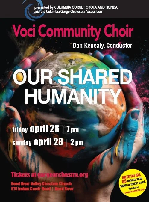 The Voci Community Choir presents a “moving, exciting and varied program of choral music celebrating the common elements of the human experience.” The concert is Friday, April 26, at 7 p.m. and Sunday, April 28, at 2 p.m. at Hood River Valley Christian Church.